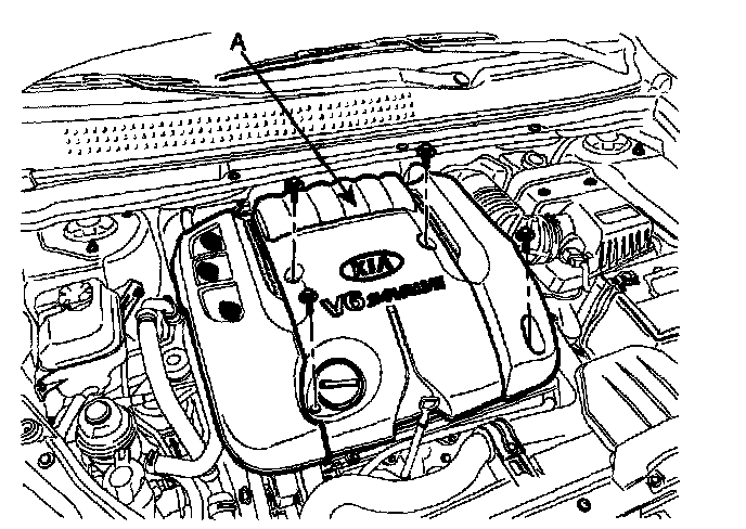1. Remove the engine cover (A).