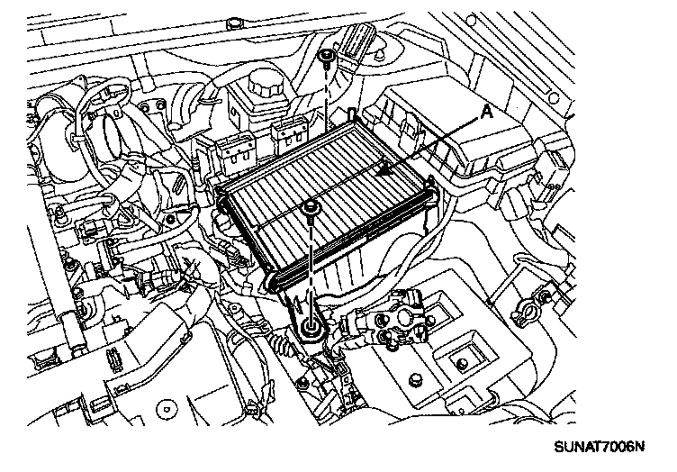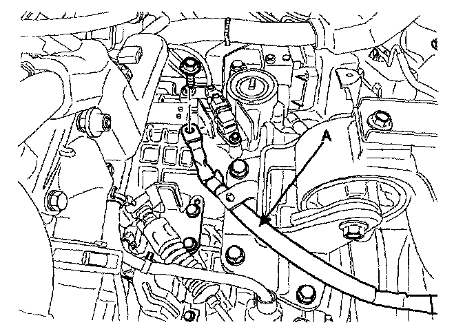 15. Remove the transaxle insulator mounting bolt (A).