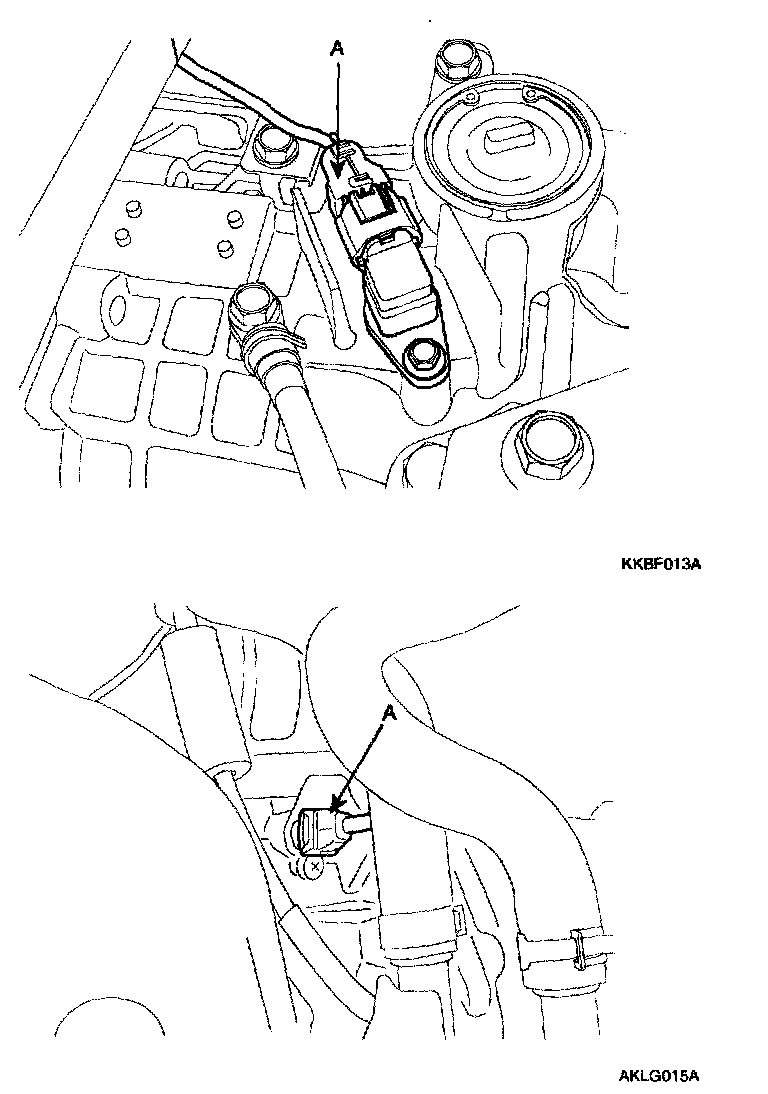 10. Disconnect the output shaft speed sensor connector (A), and vehicle speed sensor connector (B).