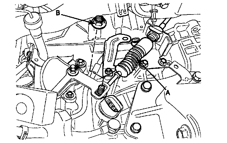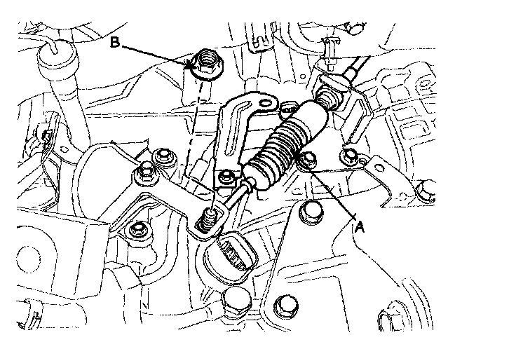 11. Disconnect the control cable (A) by removing the nut (B).