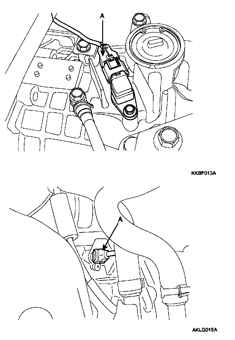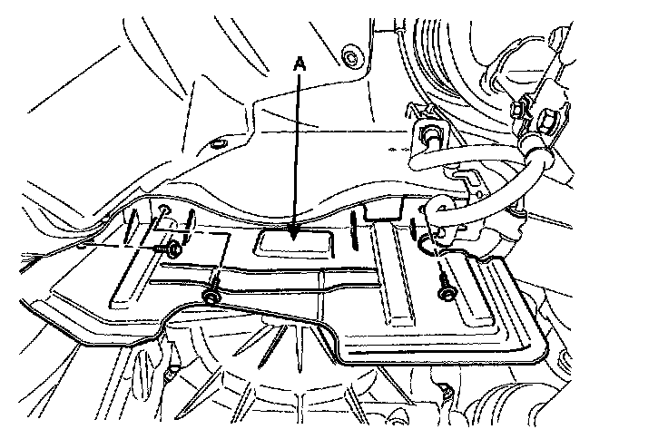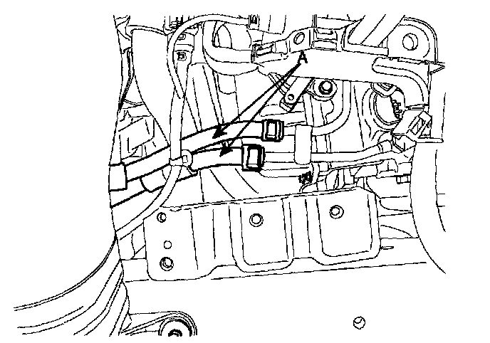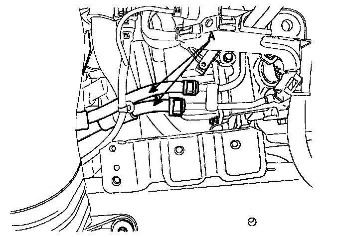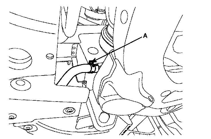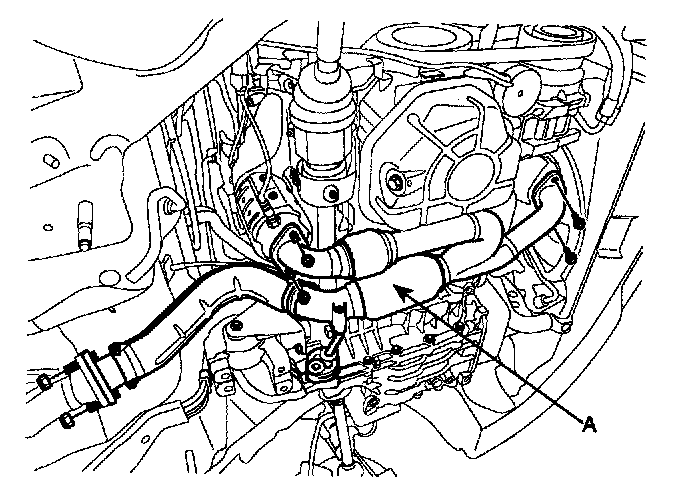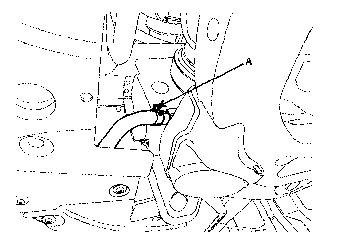 13. Remove the transaxle oil cooler hoses (A) releasing the clamps.