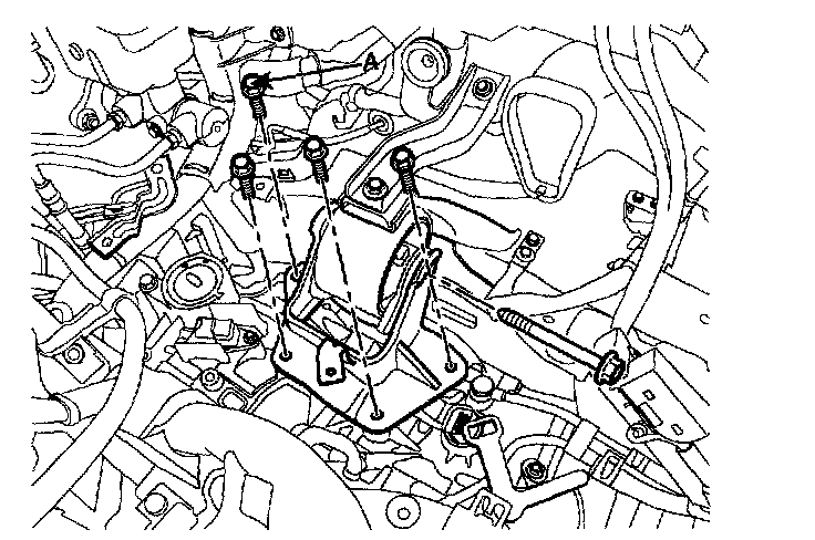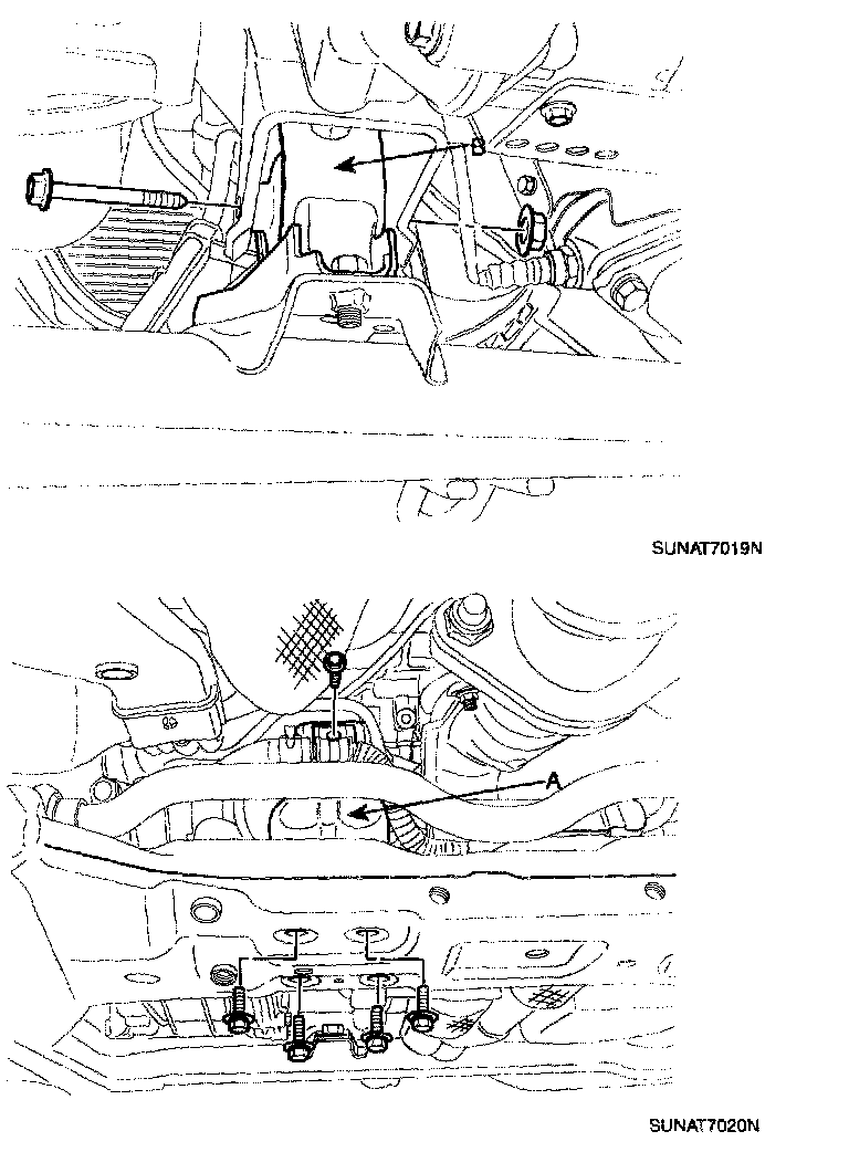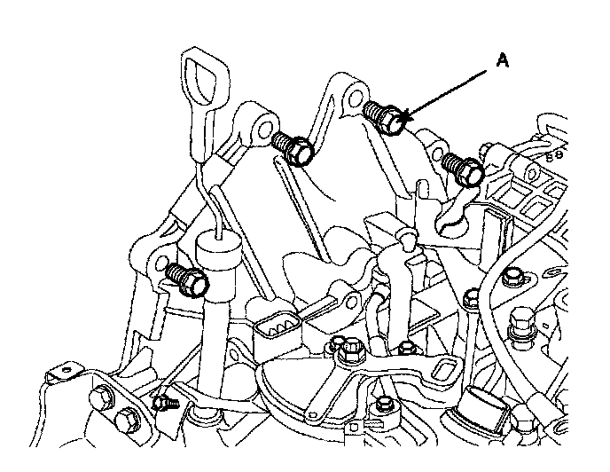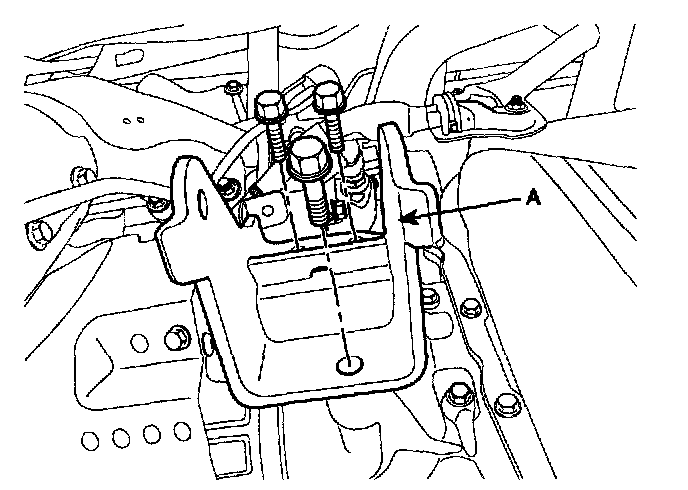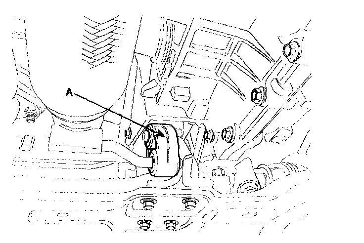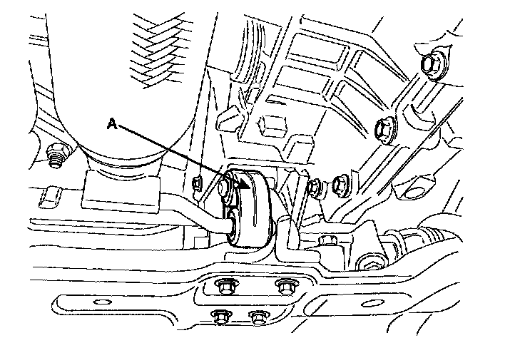 31. Remove the front roll support (A) from the transaxle.
