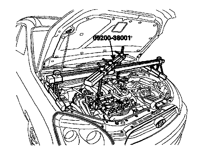 16. Using the SST(09200-38001), support the engine and transaxle assembly safely.