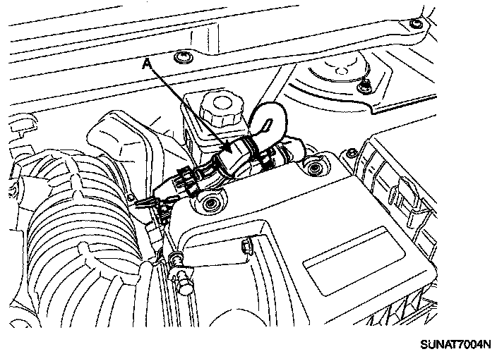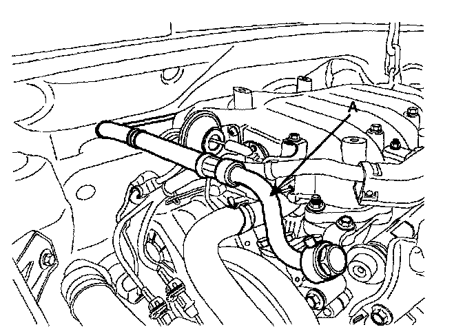 17. Disconnect the power steering pressure tube (A) from the power steering oil pump.