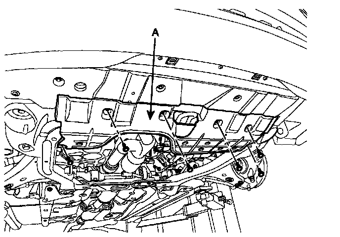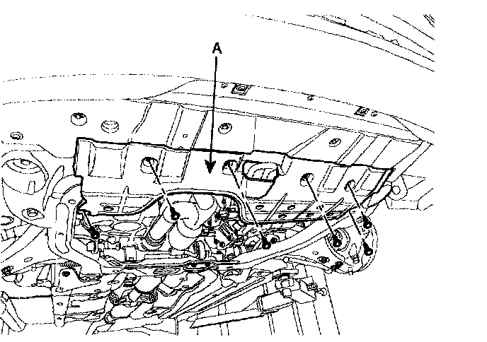 16. Install the front wheels and Lifting up the vehicle, remove the under cover (A).