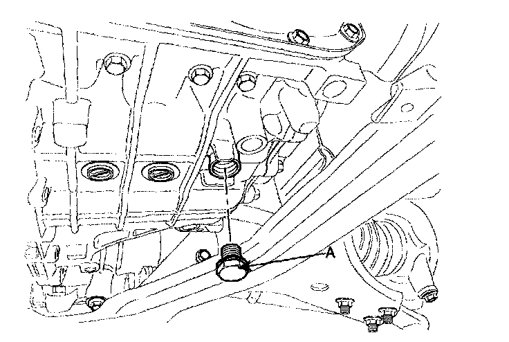 20. After removing the oil drain plug (A), drain the fluid.