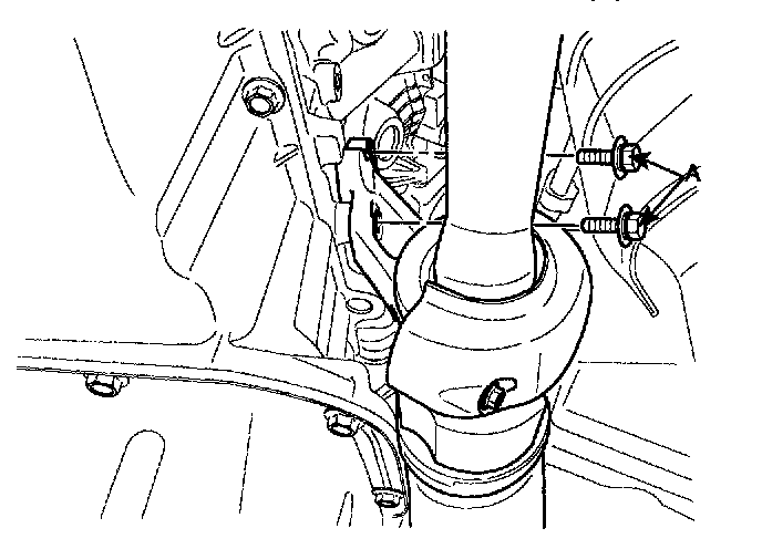 23. Remove the power steering column joint bolt (A).