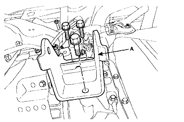 4. Install the front roll support (A) from the transaxle.
