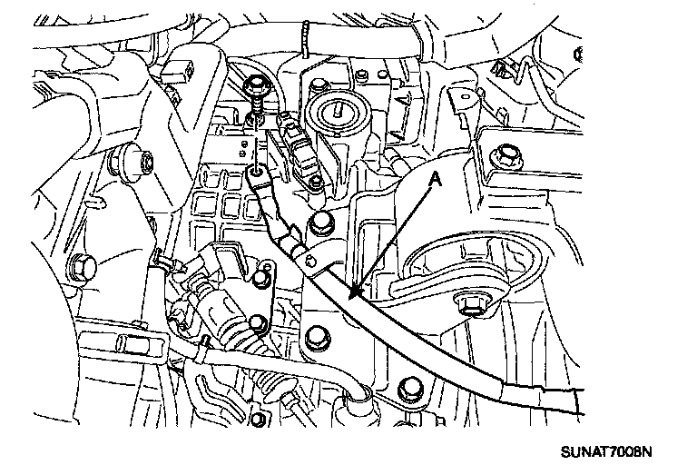 21. Install the transaxle oil cooler hoses (A) releasing the clamps.