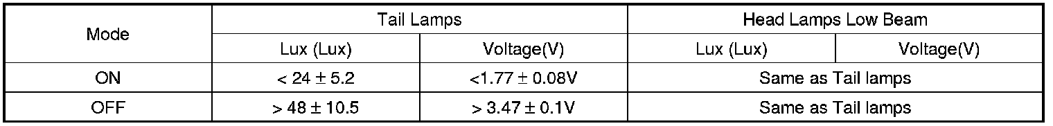a. When Auto light function activated and Auto light Sensor signal status is not ON