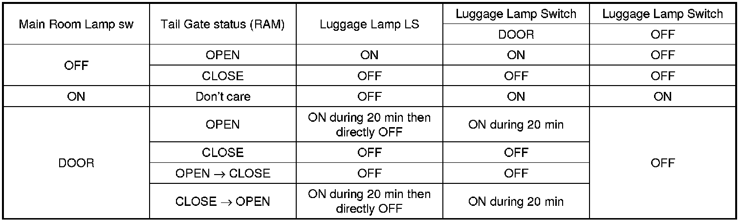 b. After 20minute Luggage Lamp OFF at tailgate open, luggage lamps are turned ON again when: