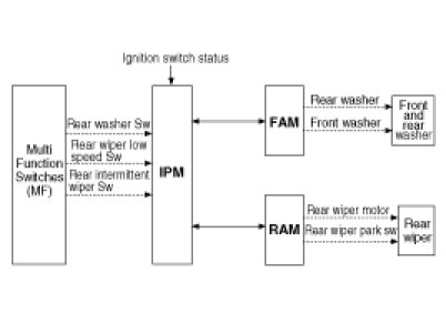 c. In the OFF and ACC states, the rear wiper stops its movement at current position. The rear wiper will move to the park position at the next IGN ON. In these states, the rear washer is not activated.