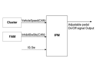1. Adjust Pedal allows to activate Adjustable Pedal feature for the non-IMS equipped vehicle, IPM needs to control the power source (by relay coil control) of the adjustable Pedal switch unit.