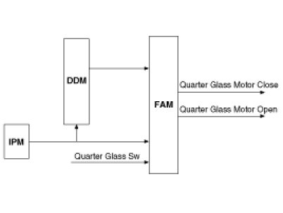 1. The purpose of the power window function is to manage the driver and assist power window motors. This function is entirely implemented in the DDM and ADM (door modules) and DMS role for this function is limited to providing signals through the CAN bus.
