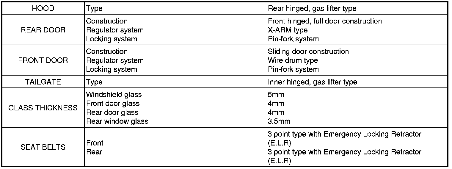 Body and Frame: Specifications
