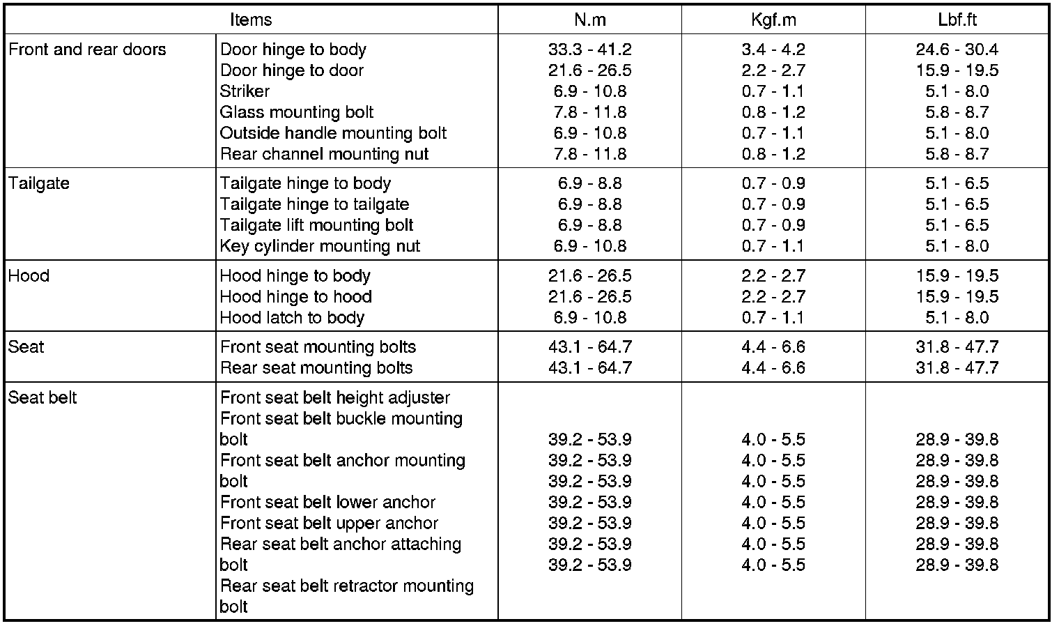 TIGHTENING TORQUE