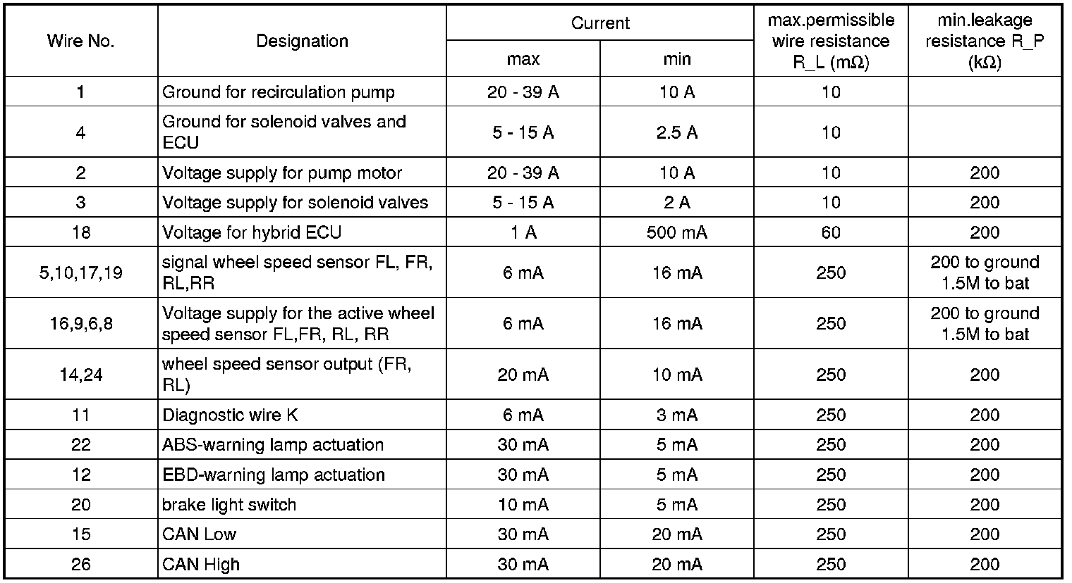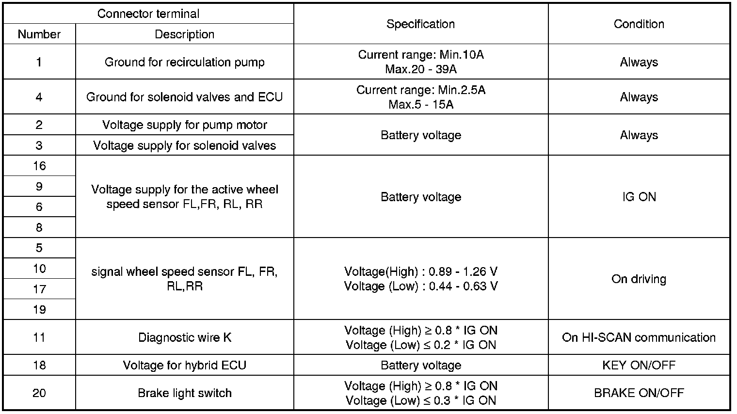 ECU CONNECTOR INPUT/OUTPUT(ABS)