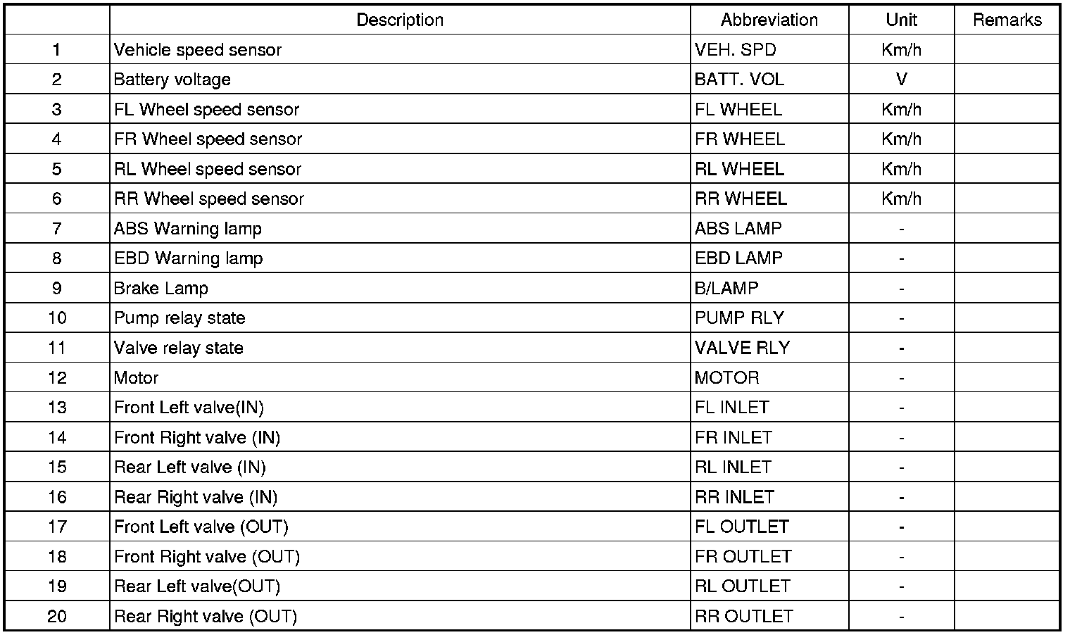 SENSOR OUTPUT ON SCAN TOOL(ABS)