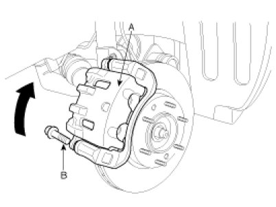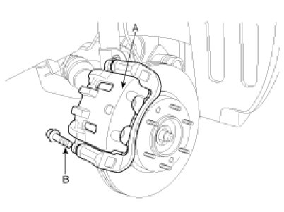 2. Remove the guide rod bolt (B), After raise the caliper assembly (A), support it with a wire.