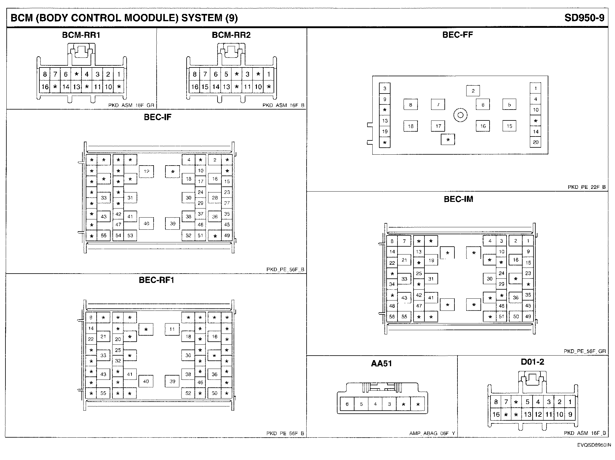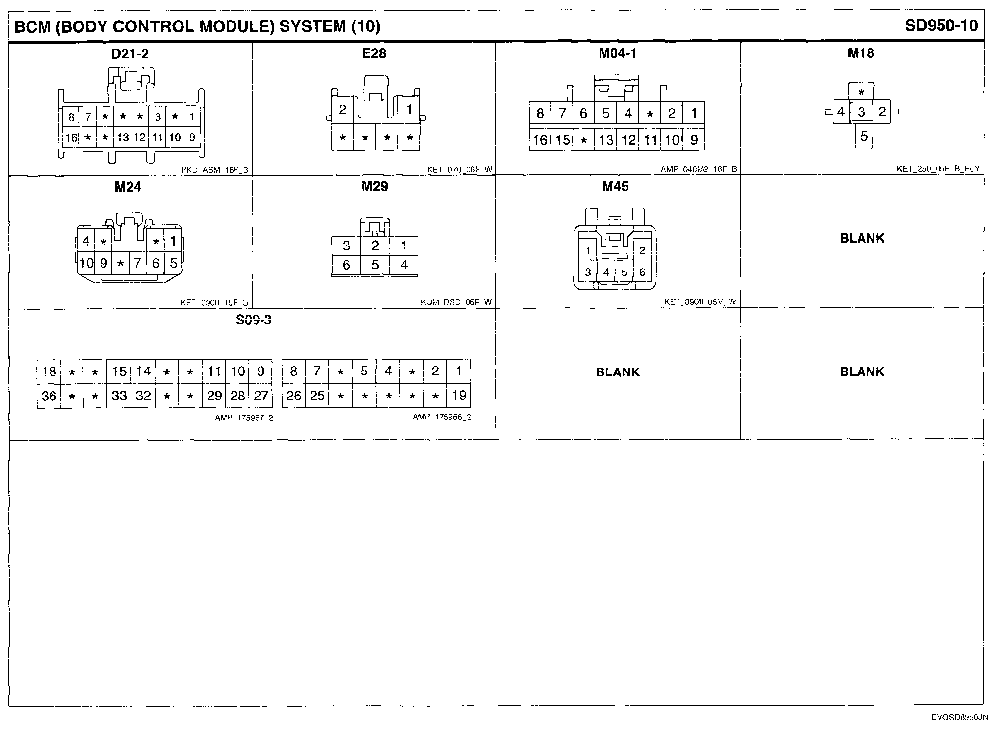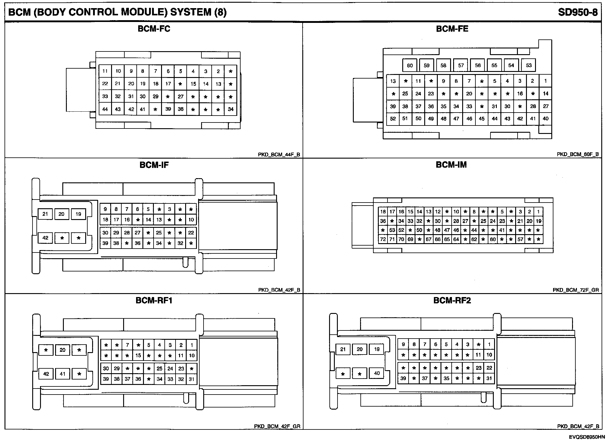 BCM (Body Control Module) System Connector Pin Outs: