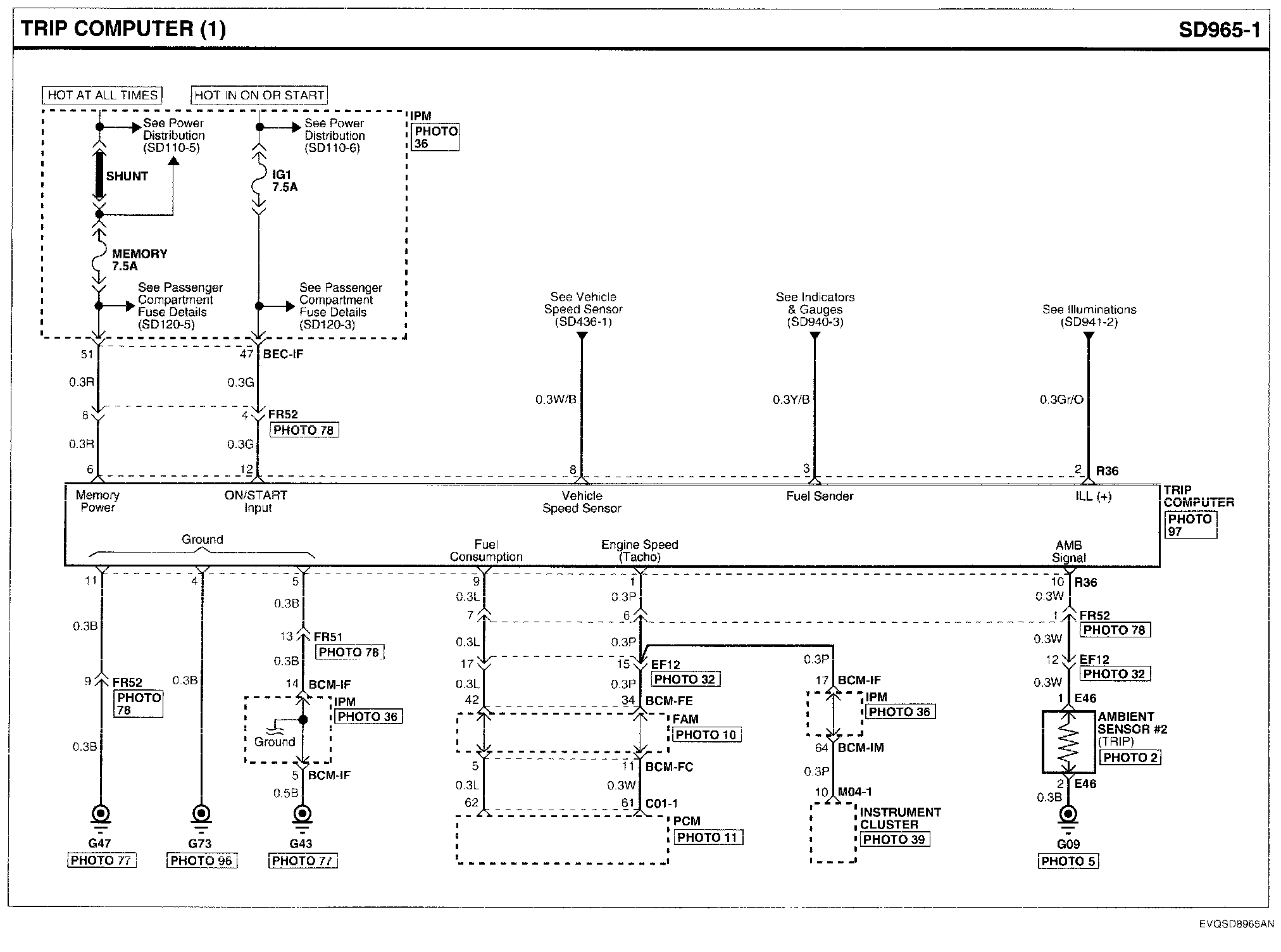 Locations: Location photographs (references to PHOTOS) referred to within these diagrams can be found via the photo number at the vehicle level under Locations by Photo Number. Component Locations