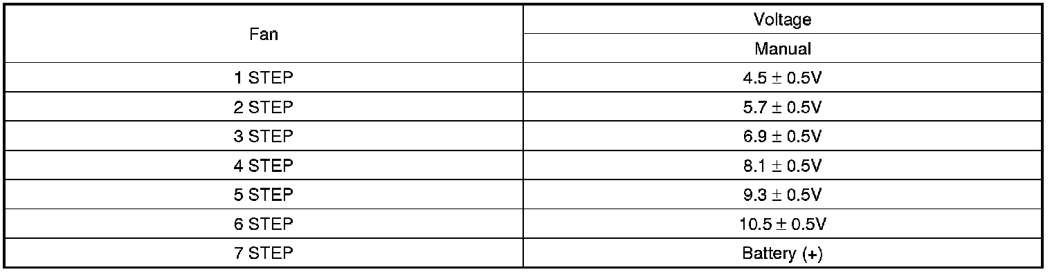2. Manually operate the control switch and measure the voltage of blower motor between pin 1 and 2.