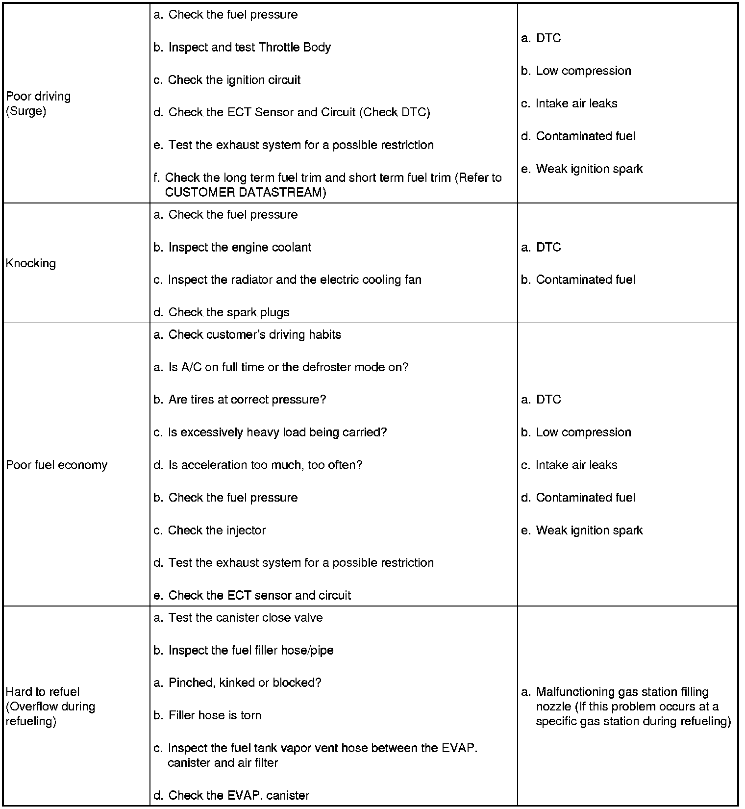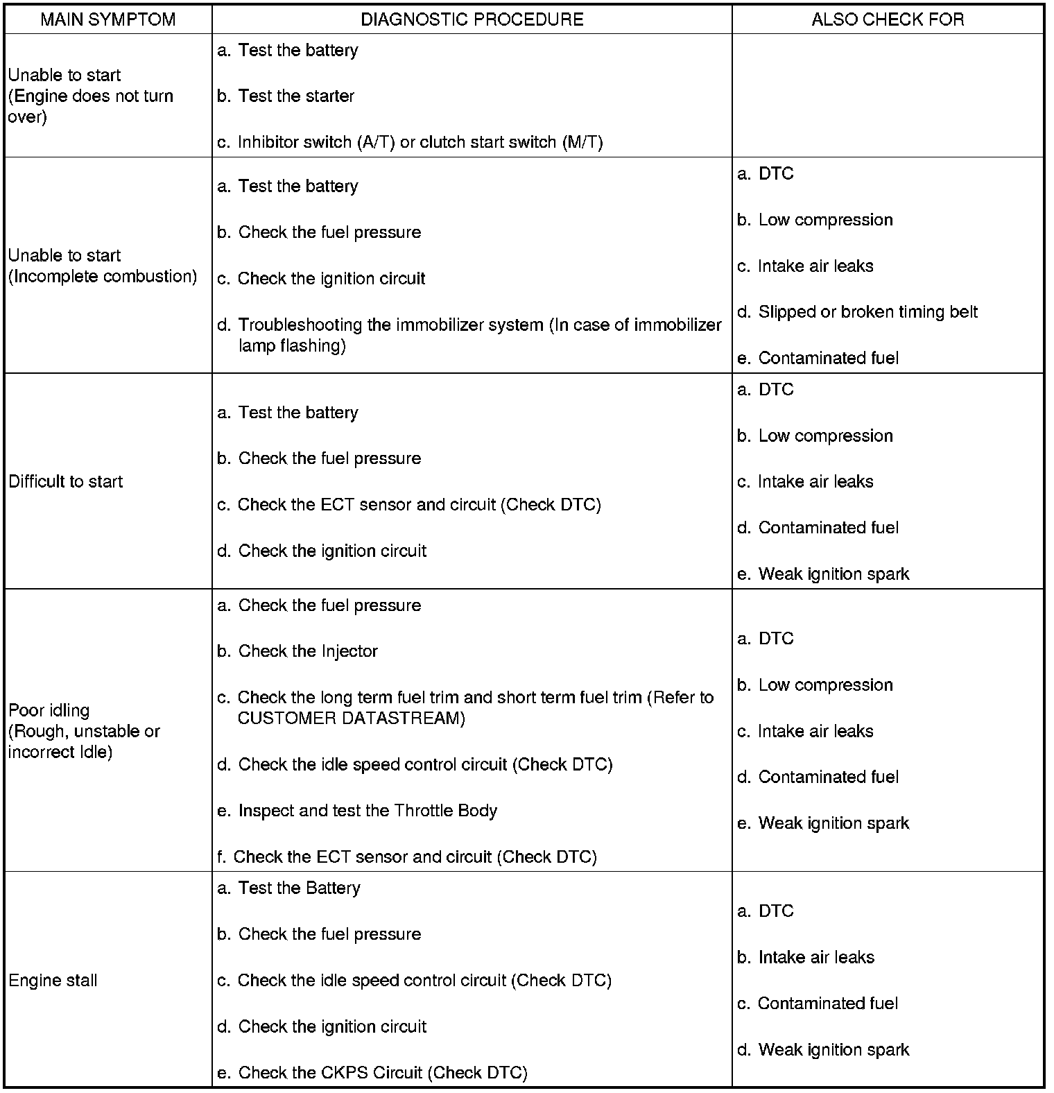 SYMPTOM TROUBLESHOOTING GUIDE CHART