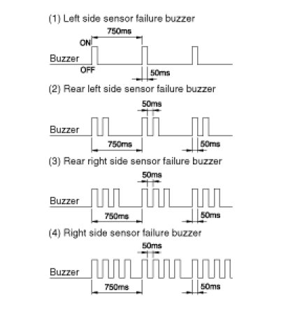 d. Right side sensor failure : beep beep beep beep-beep beep beep beep-beep beep beep beep