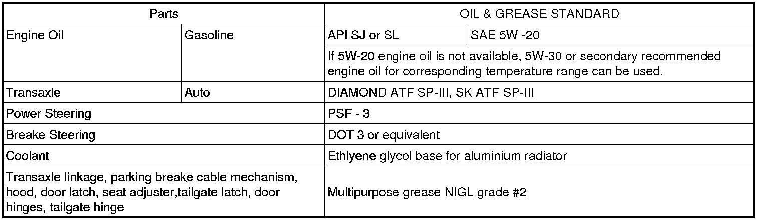 Using any other type of parts and fluid can cause serious damaged if the vehicle.RECOMMENDED LUBRICANTS