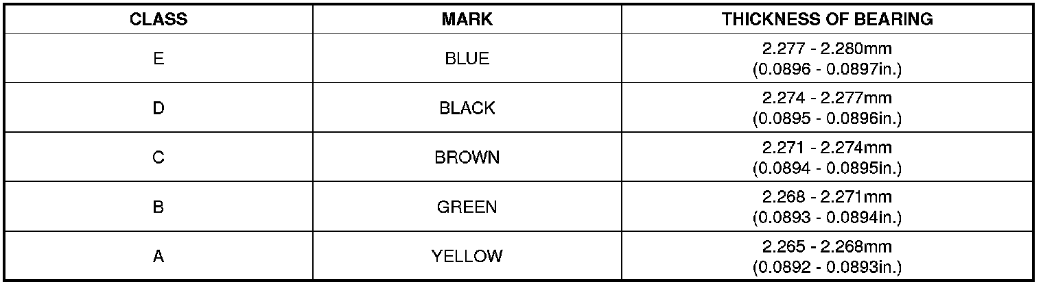 Crankshaft Bearing Size codes