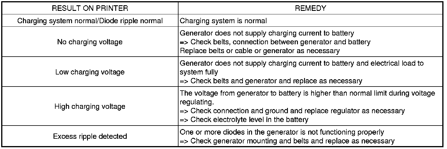 6. The MICRO 570 will detect the amount of ripple from the charging system to the battery. Excessive ripple usually means the stator is damaged or that one or more generator diodes have failed.