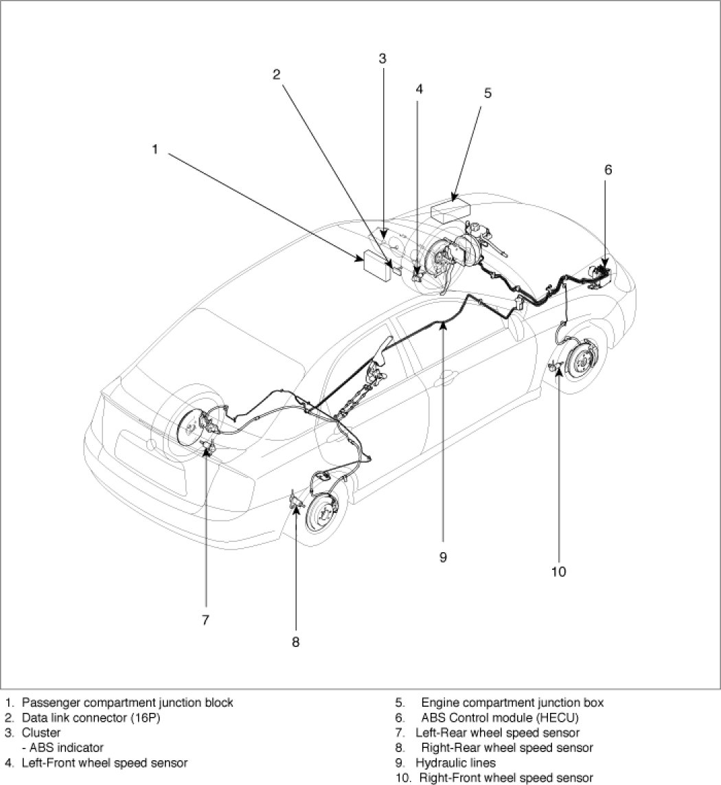 - Input of signal from the wheel speed sensors attached to each wheel.