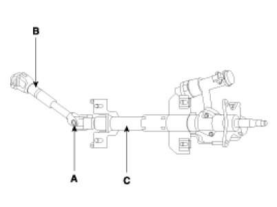 1. Remove the bolt(A) connecting the universal joint assembly(B) and the steering column and shaft assembly(C).