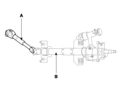 2. Remove the universal joint assembly(A) from the steering column and shaft assembly(B).
