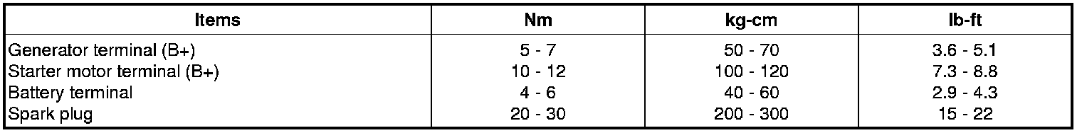 Starting and Charging: Specifications