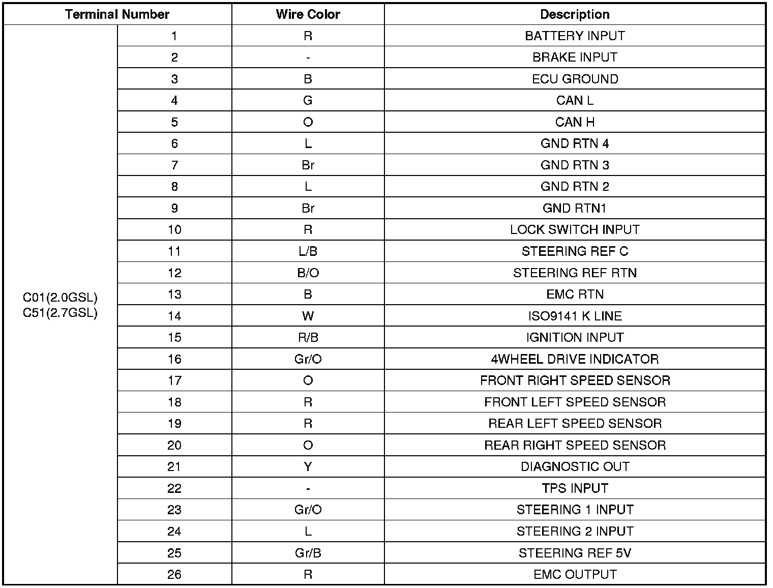 4WD ECM PIN DESCRIPTION