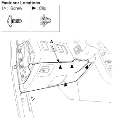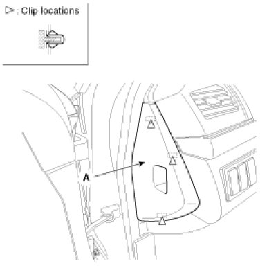 1. Remove the crash pad side cover (A).