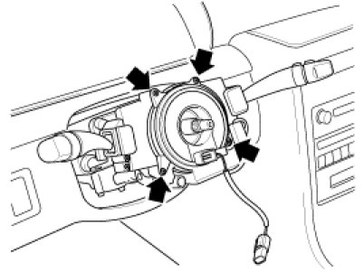 1. Tighten the four mounting bolts after installing the clock spring and steering wheel angle sensor.