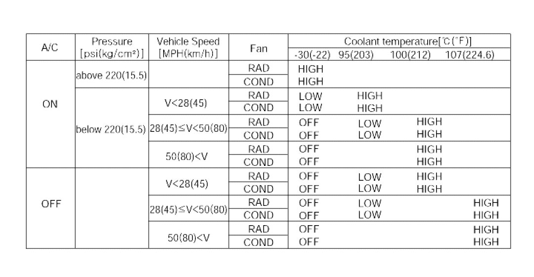 - Both condenser and radiator are operated with high speed when coolant temperature failure.