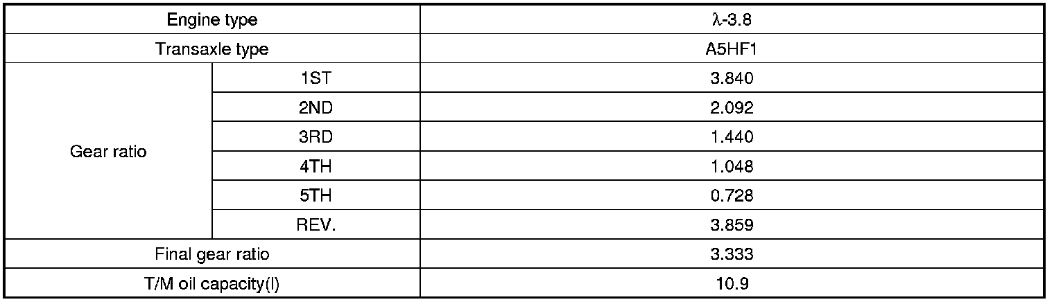 ** The quantity in the chart above is for the reference. The actual filling quantity of the automatic transaxle fluid must be set according to 'INSPECTION' or 'REPLACEMENT' process of the automatic transaxle fluid.