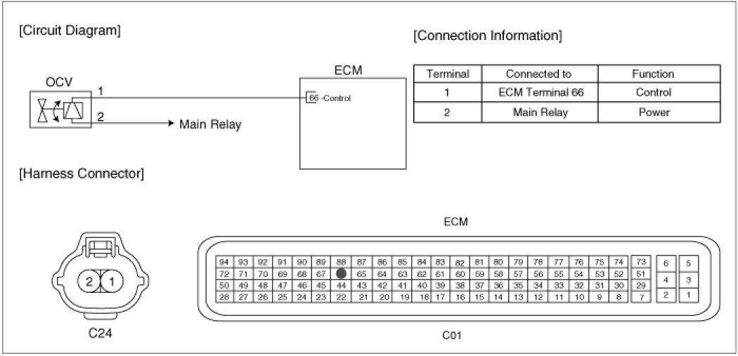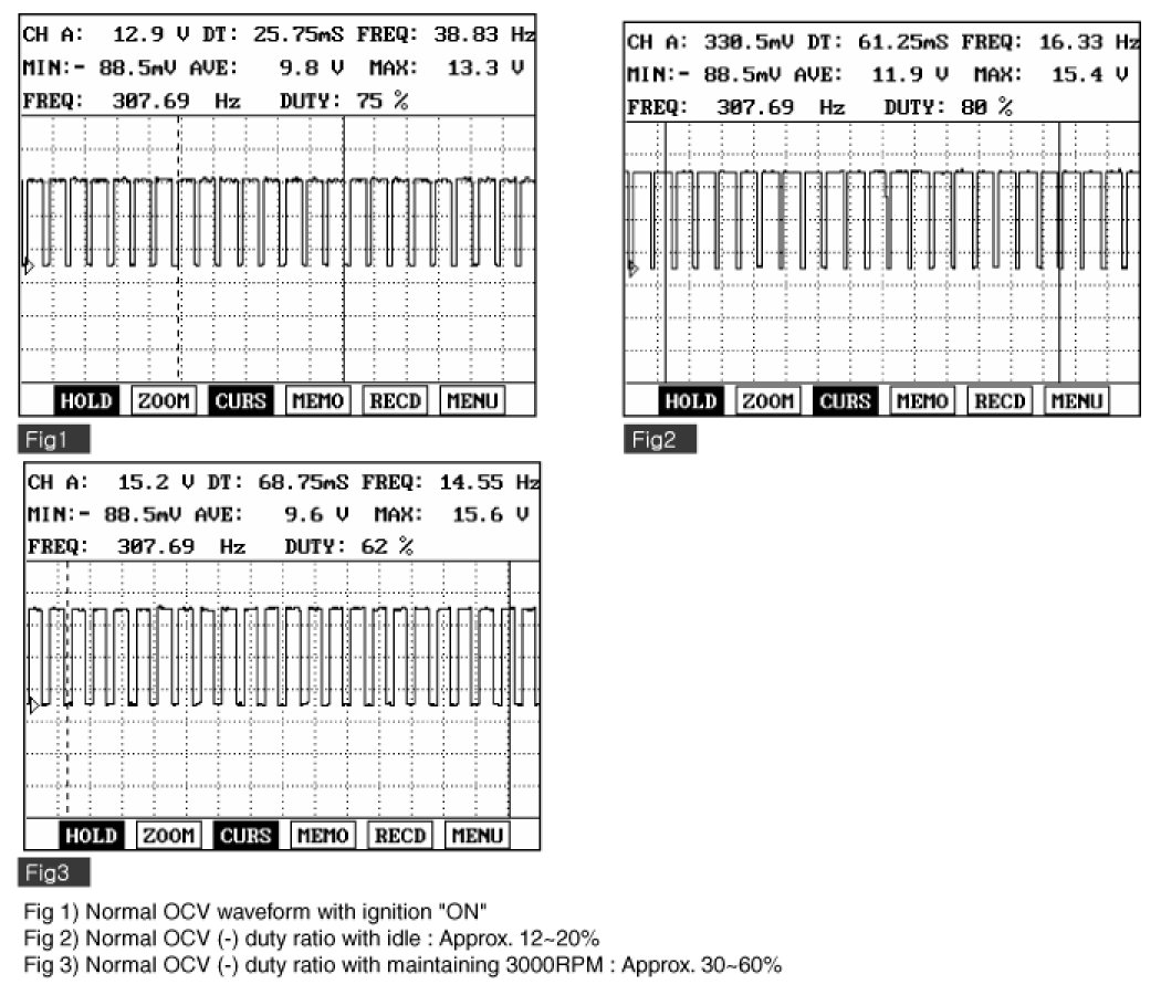 ECM sets DTC P0077 if the ECM detects that the OCV control circuit is open or short to battery