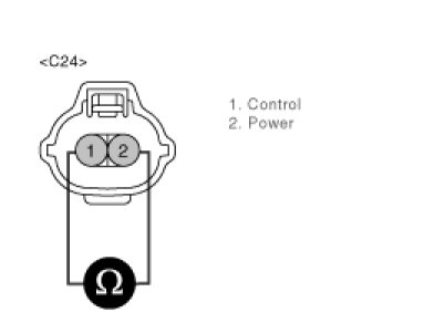 3. Measure resistance between terminals 1 and 2 of the solenoid connector(Component side).