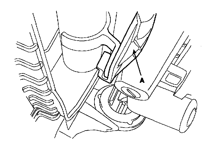 9. Push down the radiator assembly and pull it up for removal because there is a clip(A) shown as below.