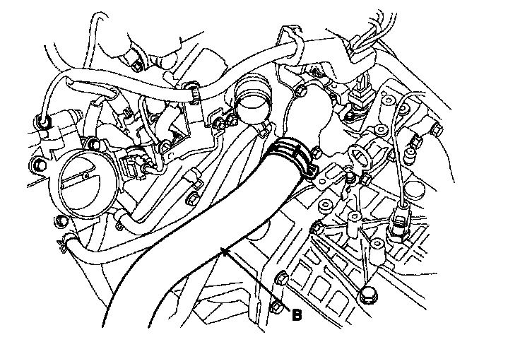 5. Disconnect the radiator upper hose(A) and the lower hose(B).