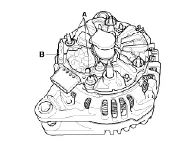 2. Loosen the mounting bolts(A) and disconnect the brush holder assembly(B).