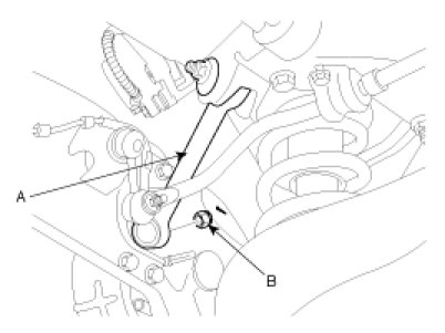 2. Install the rear assist arm (A) ball joint self-locking nut (B) and the cotter pin.