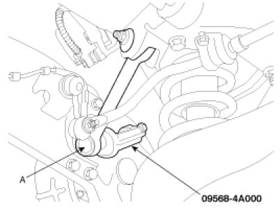 5. Remove the rear assist arm ball joint (A) by using the special tool(09568-4A000).
