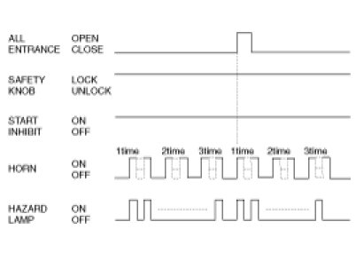 (1) Output again horn alarm 3 times when outlet OPEN again, again B/ALARM horn hold "ON", without safety knob lock at outlet close condition after completing 3 times alarm(120sec.)