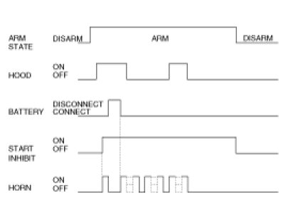 (1) When a new alarm event trigger is received during an existing alarm sequence, the existing alarm sequence will remain active. Horn and hazard lamp output will only continue for the duration of the existing alarm sequence (event timer will not re-set).