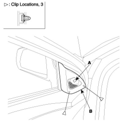 1. Push the inside rear view mirror base (A) down to remove to inside rear view mirror assembly(B).
